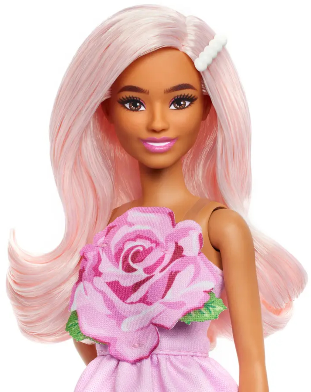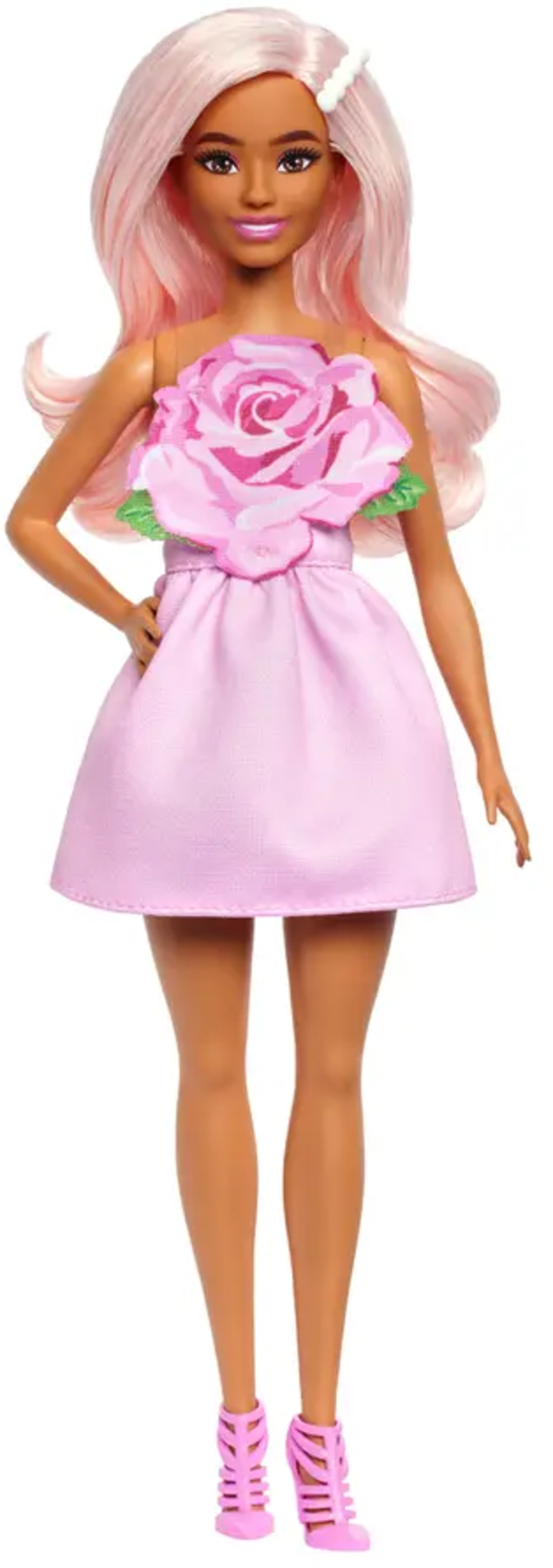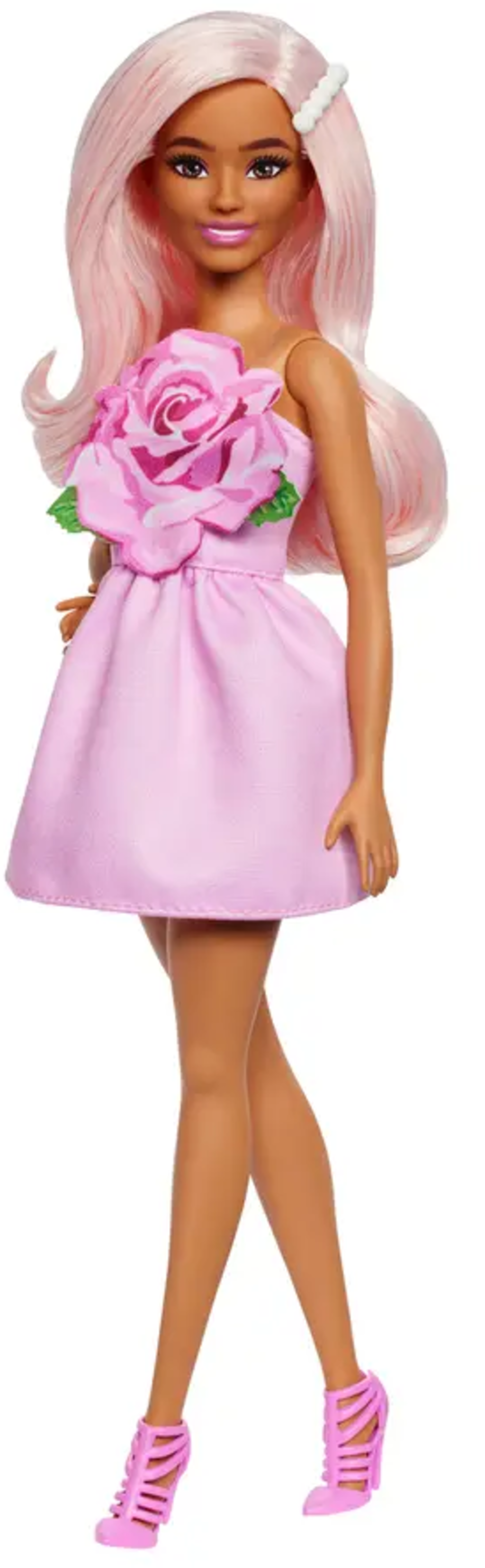 The Barbie Fashionistas doll brings colour and style to the nursery. With her strapless rose dress and pastel pink hair with a pearl barrette, she is ideal for creative role play or fashionable stories.