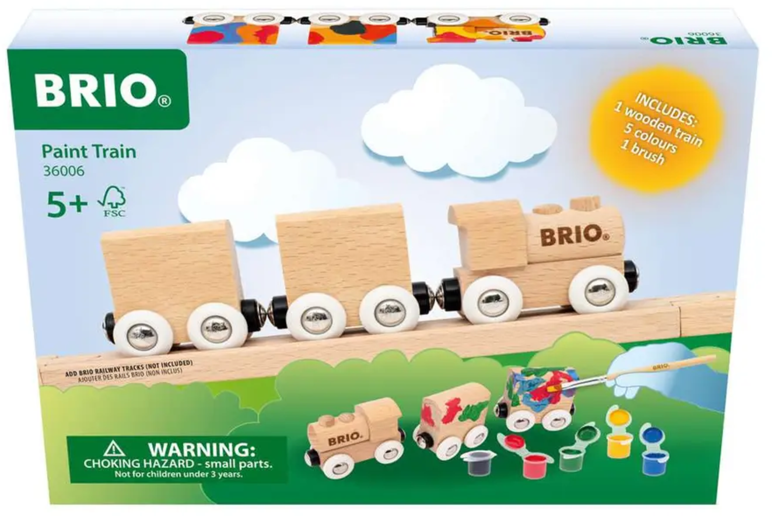 The BRIO wooden train for painting invites little artists to design their own railway. With brushes and water-based acrylic paints, children can get creative, mix colours and create their own personal designs - which can be painted over again and again for endless painting fun. Perfect for developing fine motor skills and imagination through play.