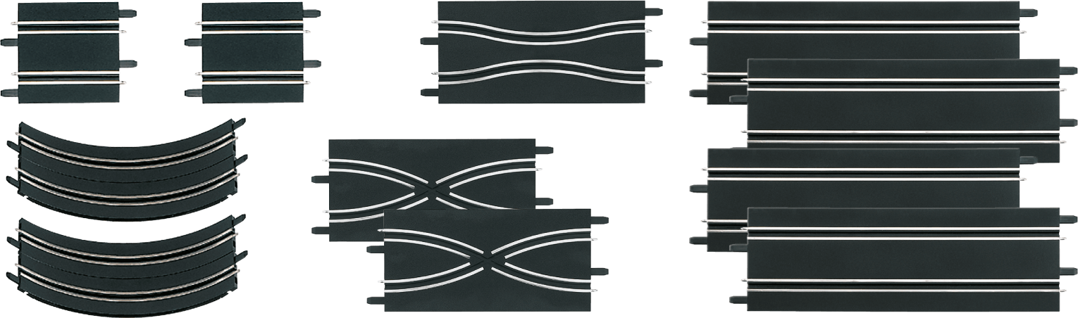 - 2 fly-overs incl. supports to slow down slot cars after loops & keep them on track