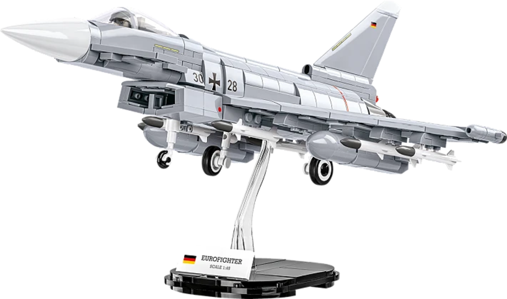 Thanks to the included presentation stand and nameplate, the completed jet will be an absolute eye-catcher on your desk. The high-quality prints are particularly robust and ensure that the Eurofighter still shines like new even after countless hours of flying.