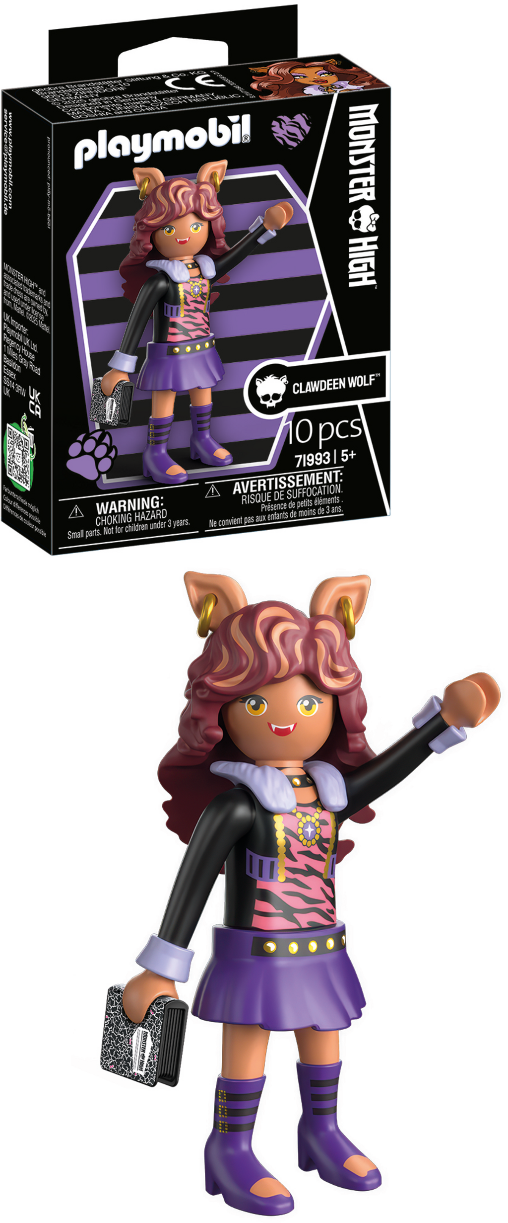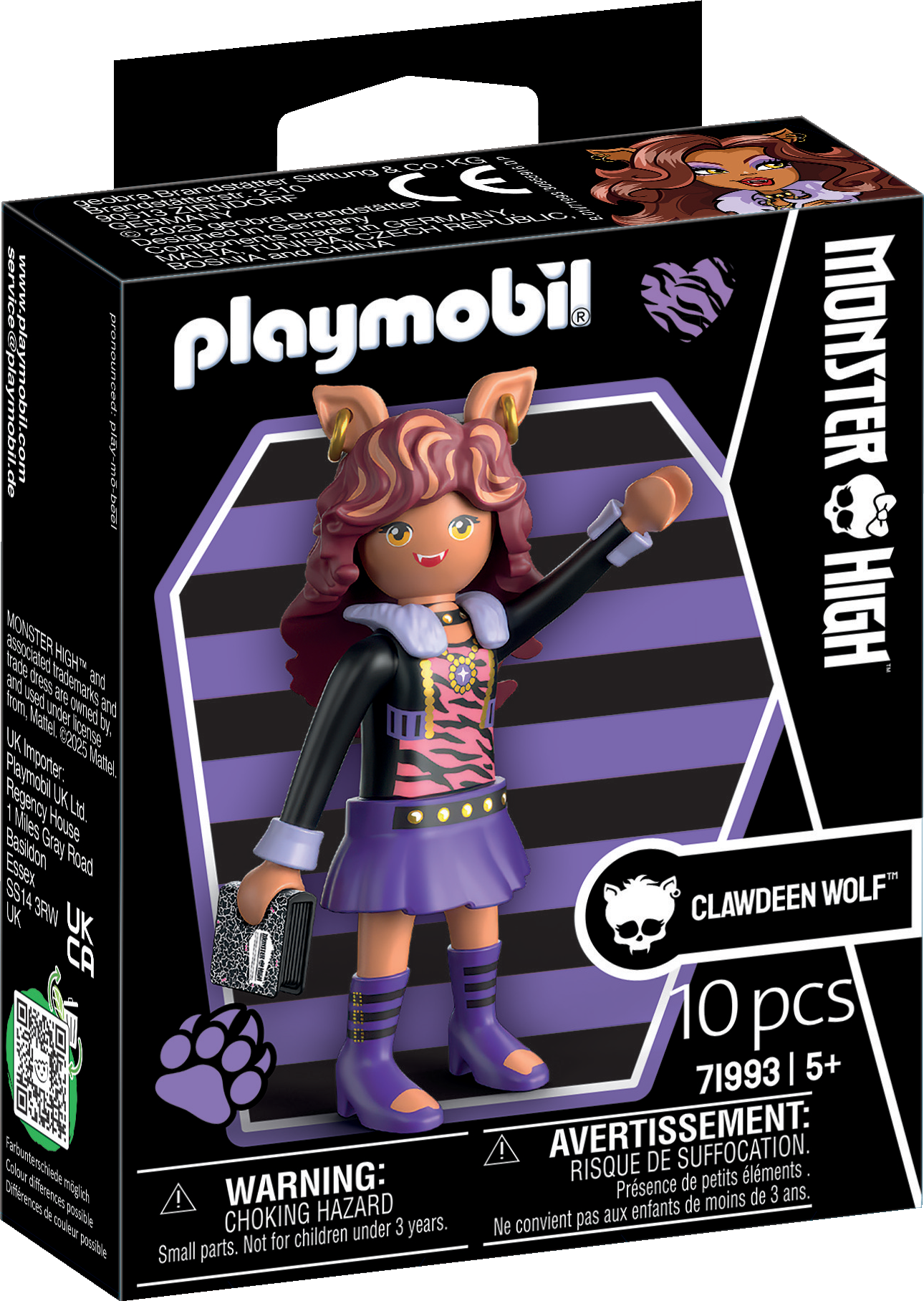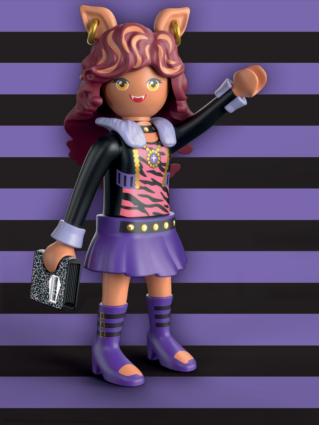 Straight from the Monster High™ catwalk, the stylish Clawdeen Wolf is now coming to your nursery as a PLAYMOBIL figure. She inspires with her unmistakably self-confident look and comes with a scary-cute book for her notes and ideas as a matching accessory. Thanks to the tried-and-tested modular PLAYMOBIL design, you can move her arms and legs and stage her perfectly for every grand entrance. As a real must-have, she will make every fan howl and is the fashionable highlight in every Monster High™ collection.