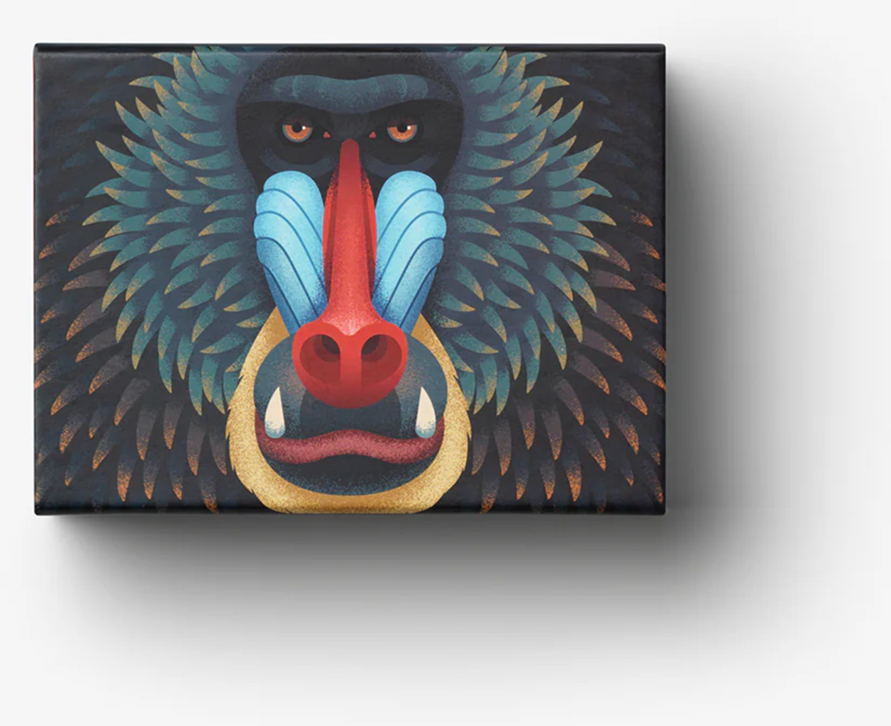 Enjoy a fun and calming puzzle experience with the Mandrill Puzzle. This compact 100-piece puzzle is perfect for both children and adults looking for a quick, satisfying challenge. Its small size makes it especially convenient and ideal for travel.