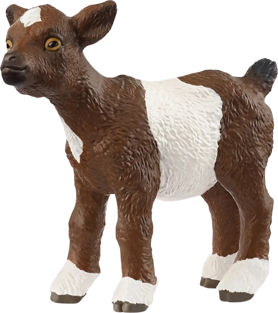 This cute little goat is curious, a little shy and loves little treats from your hand. With its chocolate brown fur, white markings and little stubby tail, it is a delightful little farm companion. Children can playfully discover life on the farm with him and experience exciting adventures - especially together with the matching goat!