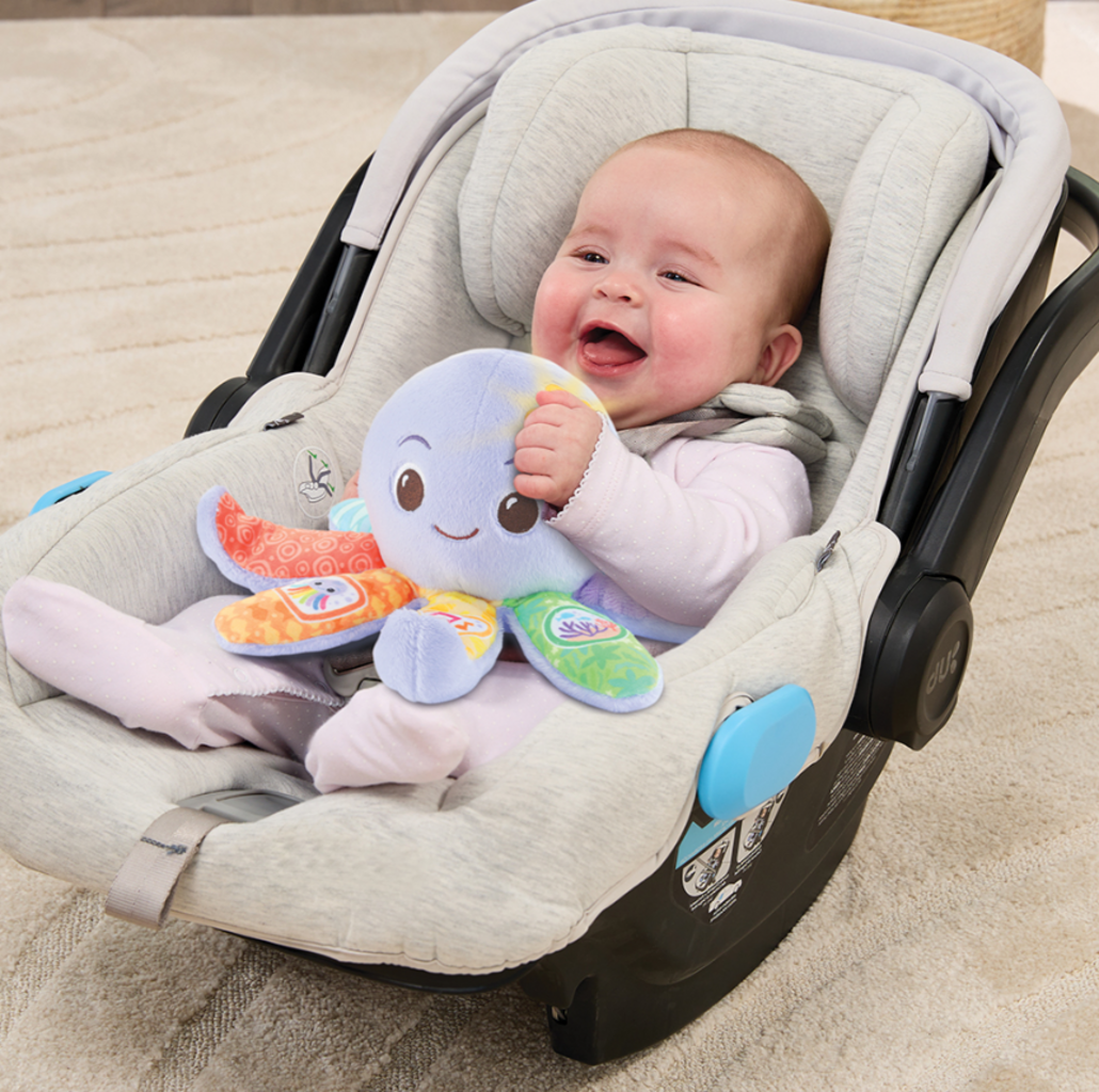 The VTech baby plush octopus invites children to discover and play. With soft tentacles, glowing starfish and interactive buttons, it stimulates the senses, auditory perception and colours in a playful way.