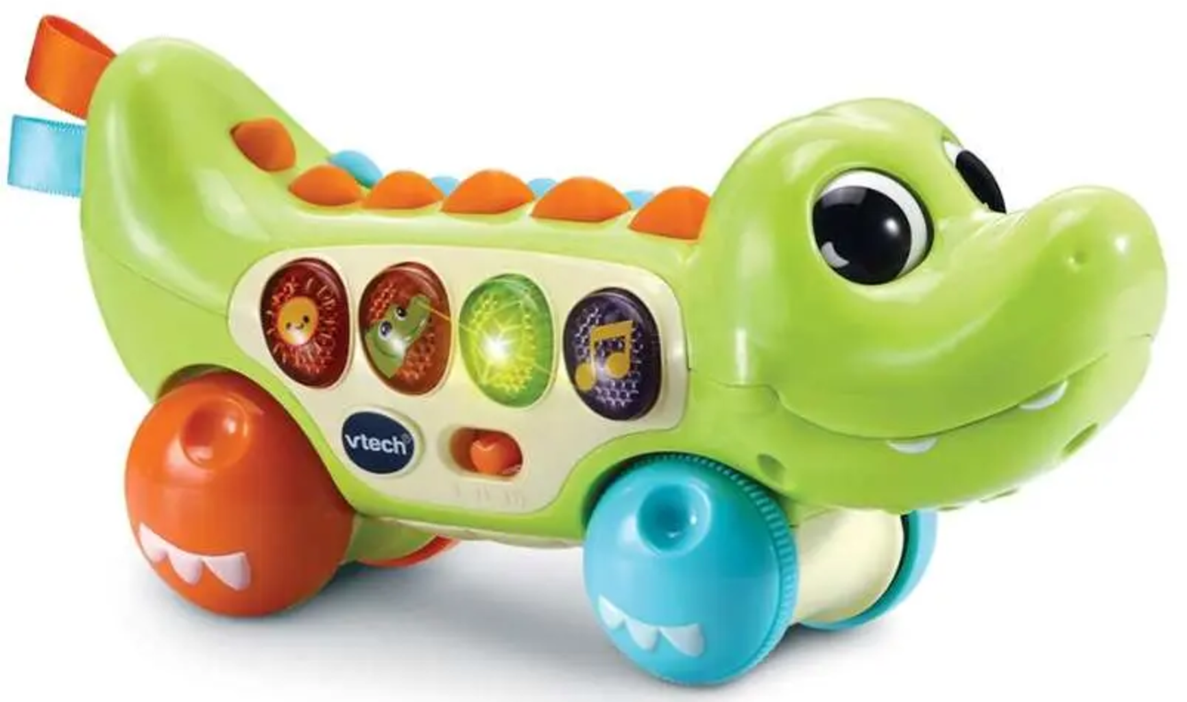 The learning fun crocodile from VTech invites children aged 1 and over to enjoy movement, music and their first learning moments. With colourful buttons, sounds, songs and interactive movement functions, it playfully promotes motor skills and an understanding of colours and symbols. Every pushing movement becomes a little adventure.