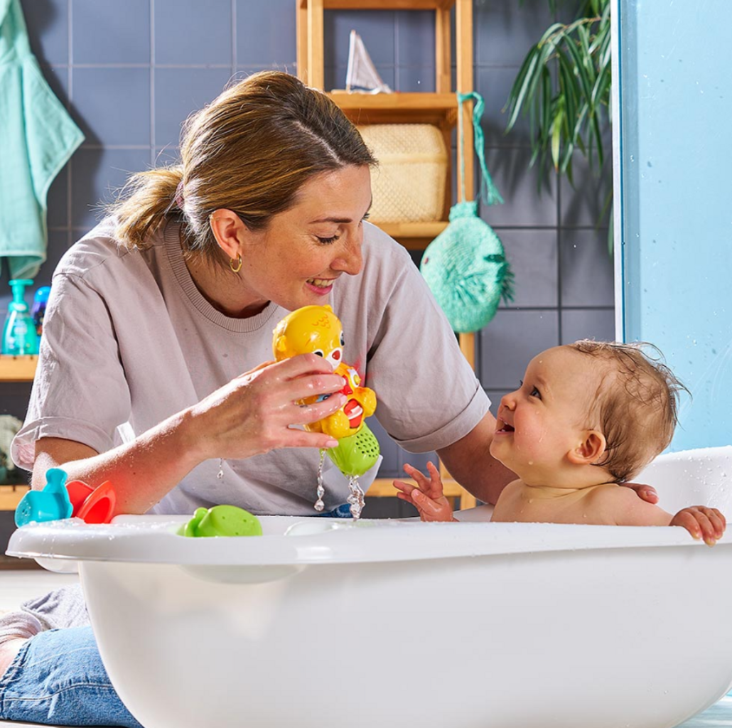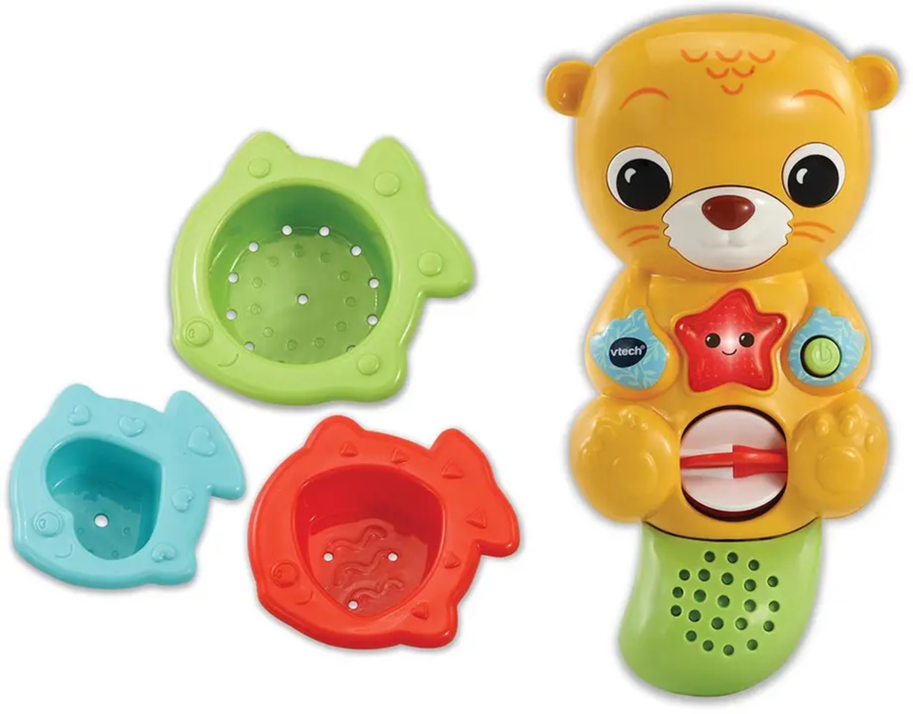 The VTech Baby Bathing Fun Otter turns the bathtub into an adventure. With a light-up button, integrated melodies and a rotating water wheel, children can playfully discover water movements, experiment with fish cups and train their motor skills.