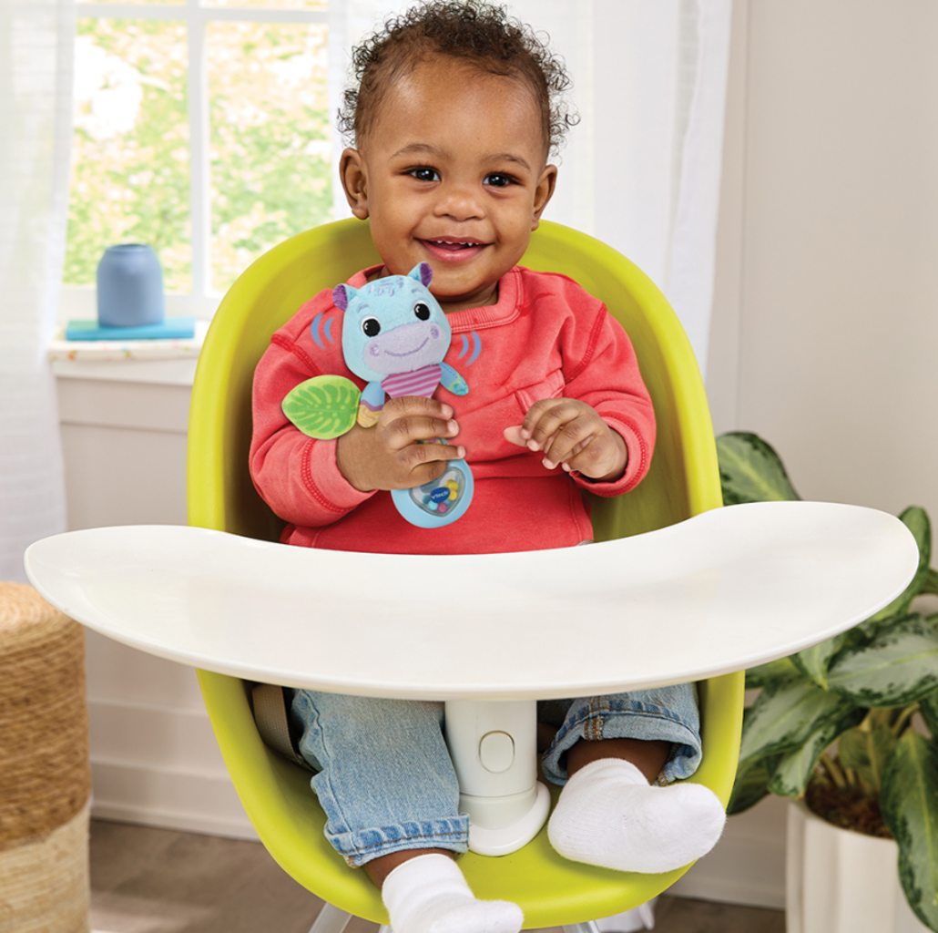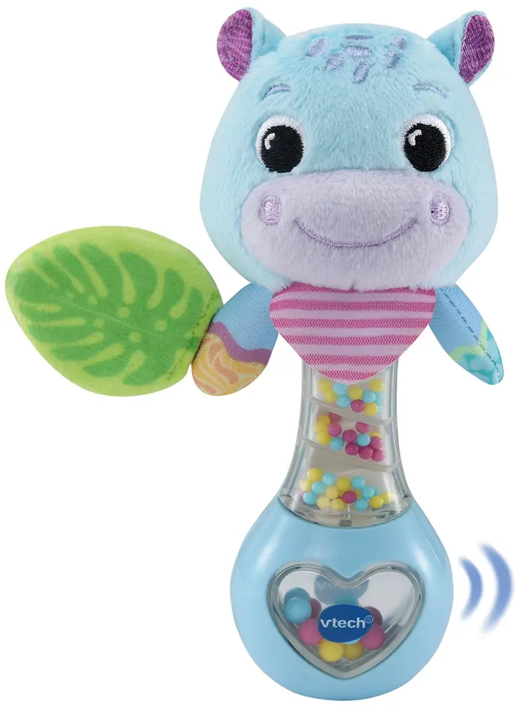The VTech Baby Babies Hippo rattle invites babies aged 3 months and over to marvel, grasp and discover. With different surfaces, crackling elements and beads, it encourages sensory perception. Ideal for little hands and first grasping and playing exercises.
